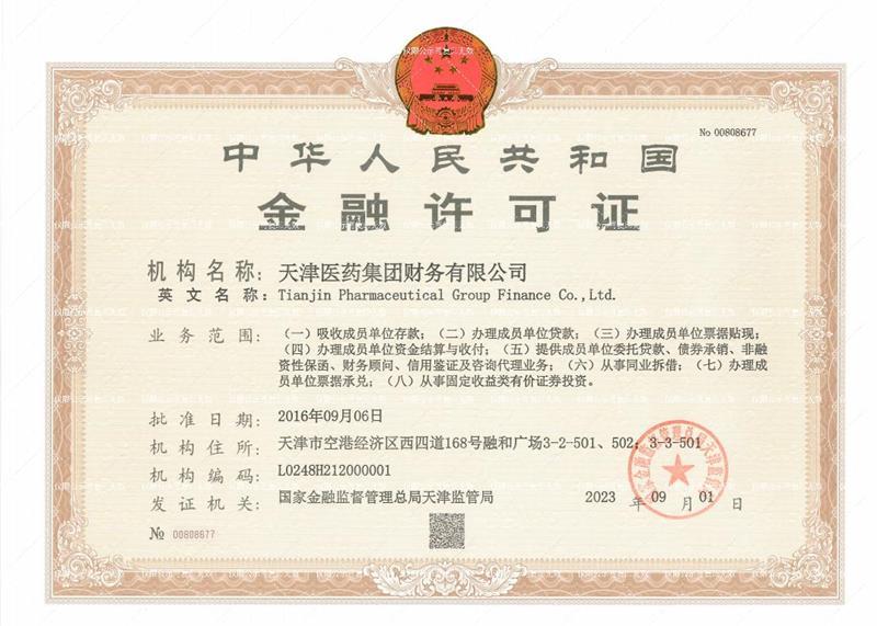 关于变更《中华人民共和国金融许可证》的公告